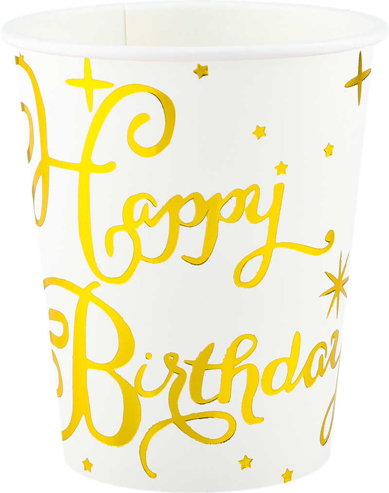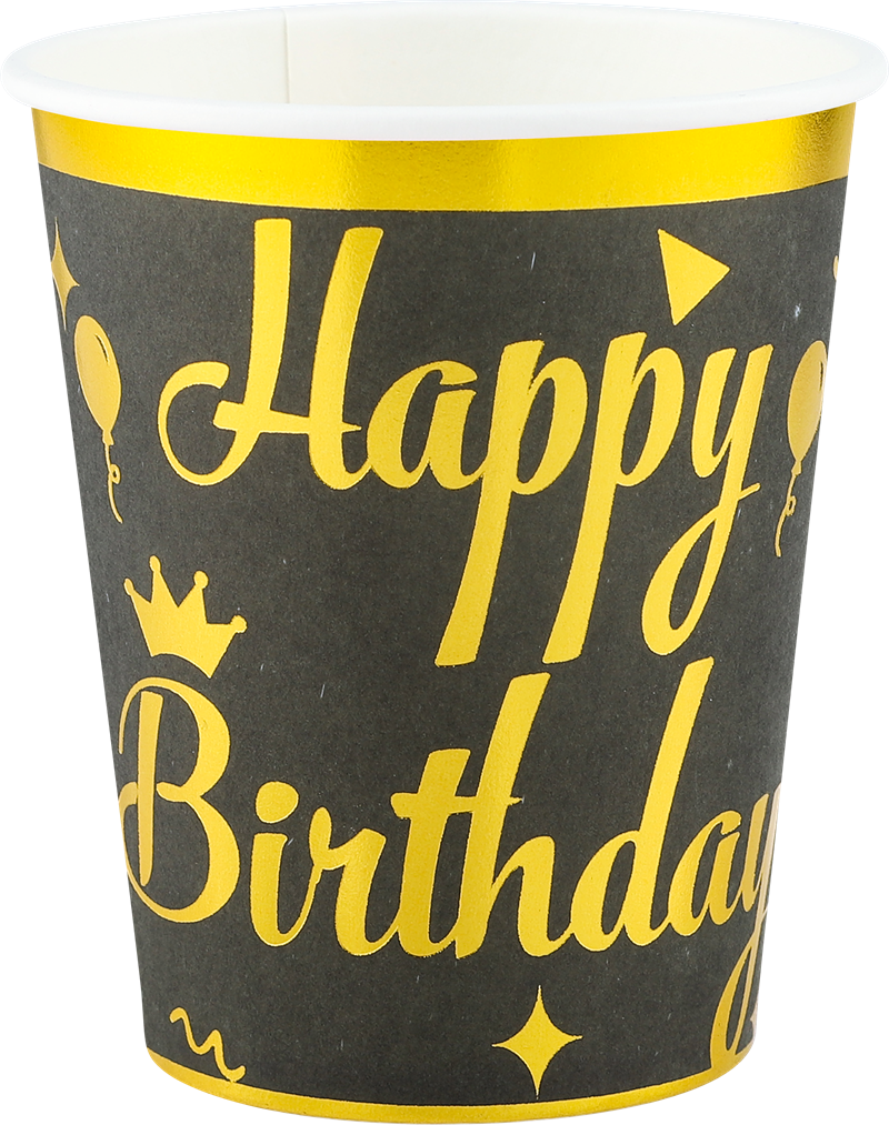 9OZ 6pcs Pack Reusable bronzing happy birthday paper cups hot sale for Women, Birthday