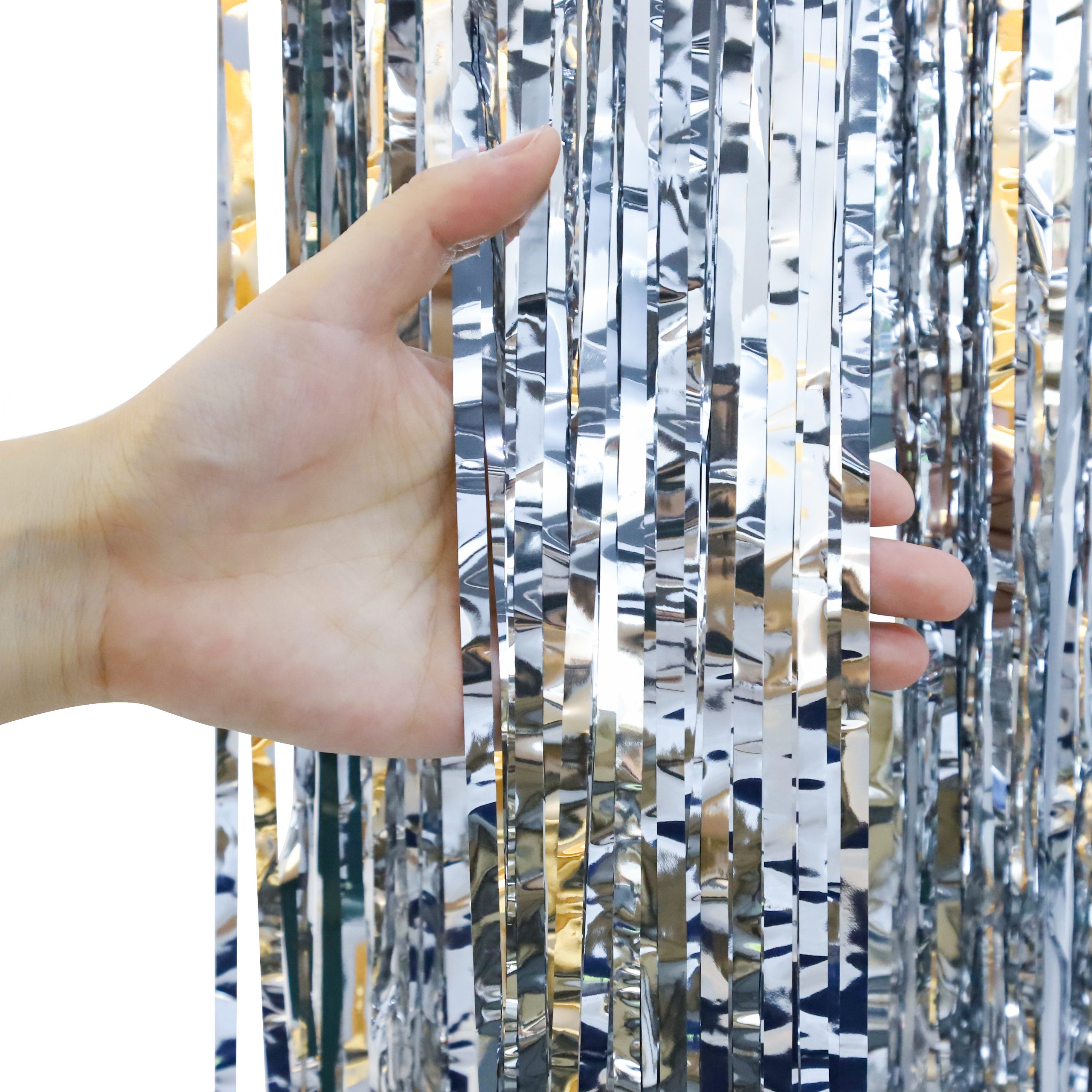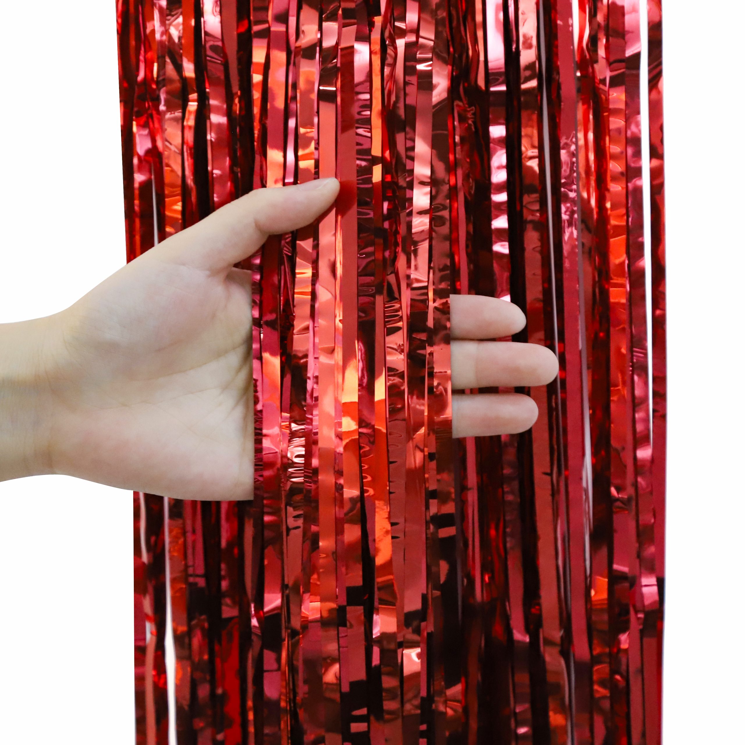 Easy to use: with double-sided adhesive tape, just remove it on the back, and stick the foil curtain set on multiple surfaces. You could create a beautiful photo backdrop in seconds, need 2 or more to get a full effect.
